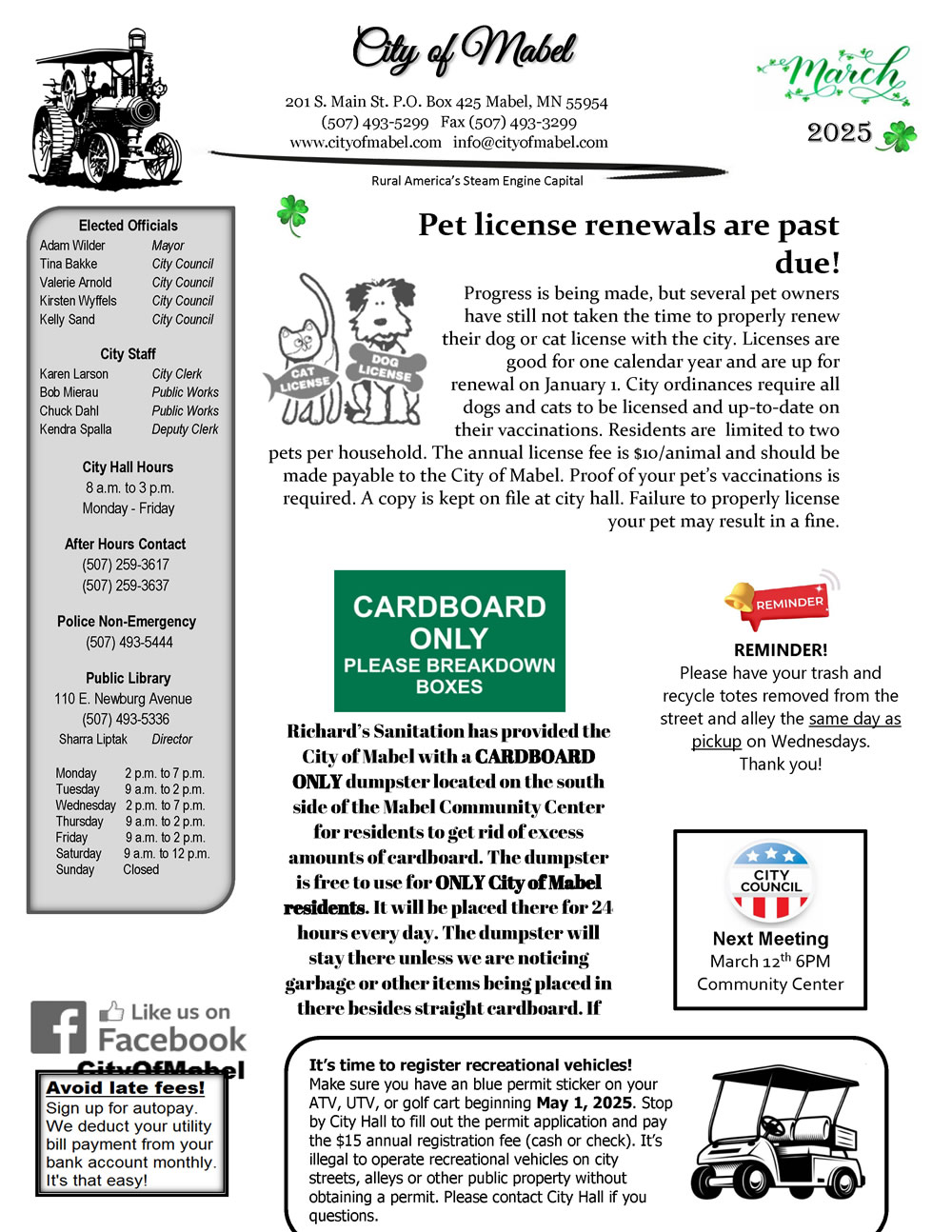The City of Mabel is an Equal Opportunity Employer and Provider